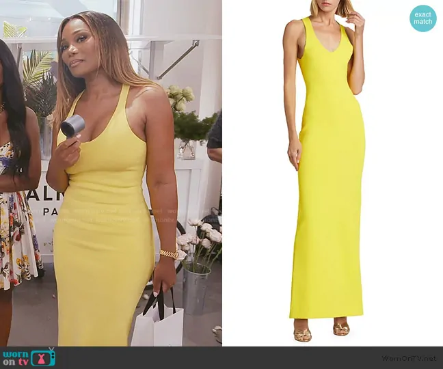 Angela Oakley on The Real Housewives of Atlanta on Bravo was spotted wearing this yellow scoop neck dress on The Real Housewives of Atlanta on episode 'High Notes and Cheap Shots' (16x03) in Mar 2025. Angela's Dress is the Knit Scoopneck Maxi Dress by Brandon Maxwell.