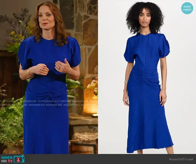 Victoria Beckham Gathered Waist Midi Dress in Palace Blue worn by Kimberly Williams-Paisley on Today