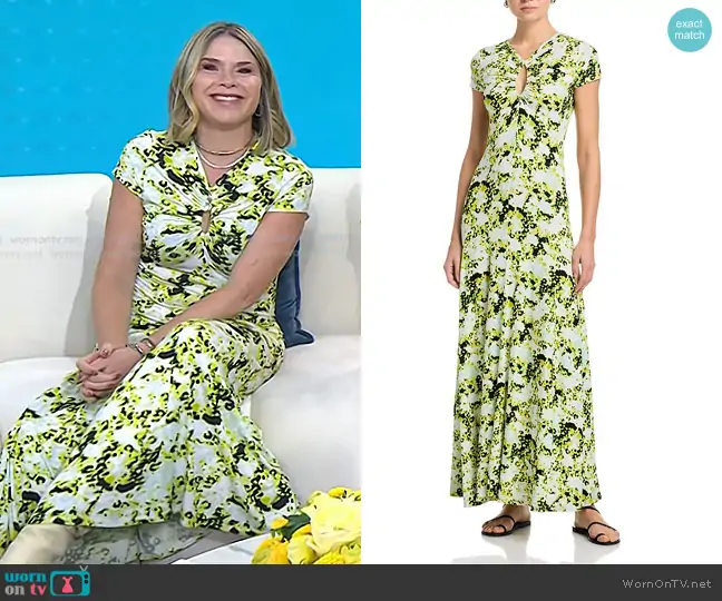 Angie's yellow printed keyhole dress on Today