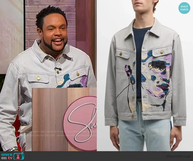 Jawn Murray on Sherri on FOX was spotted wearing this face embroidered denim jacket and jeans on Sherri on Mar 26 2025's episode. Jawn's Jacket is the Face Embroidered Denim Jacket by KidSuper . Jawn's Pants is the Face Embroidered Denim Pants by KidSuper.