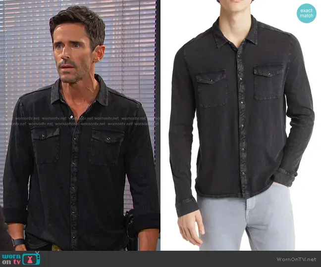 John Varvatos Arvon Shirt in Mineral Black worn by Shawn Douglas Brady (Brandon Beemer) on Days of our Lives