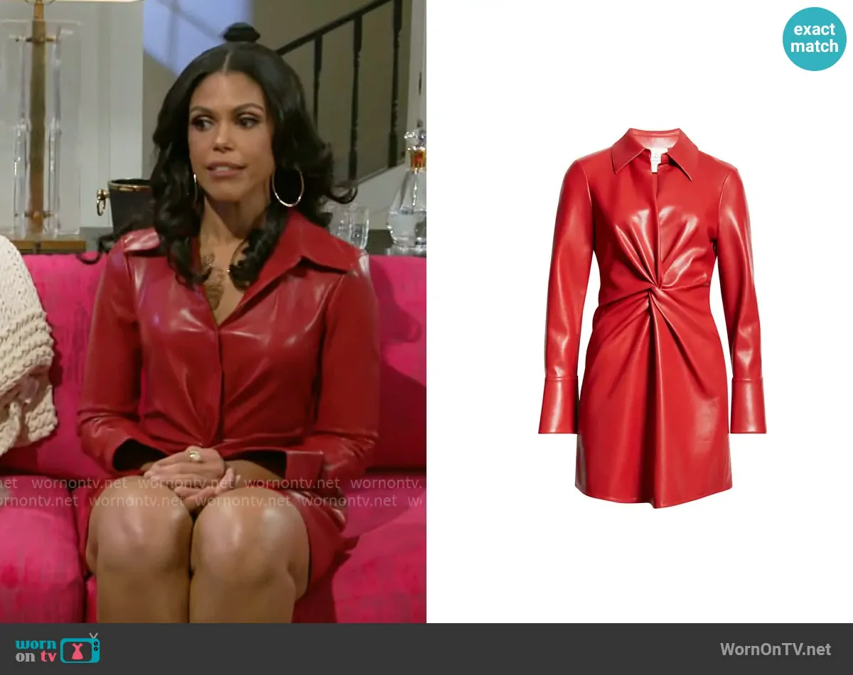 Dani Dupree (played by Karla Mosley) on Beyond the Gates on CBS was spotted wearing this red leather mini dress on Beyond the Gates on Apr 01 2025's episode. Dani's Dress is the McKenna Dress in Rosewood by Cinq a Sept.