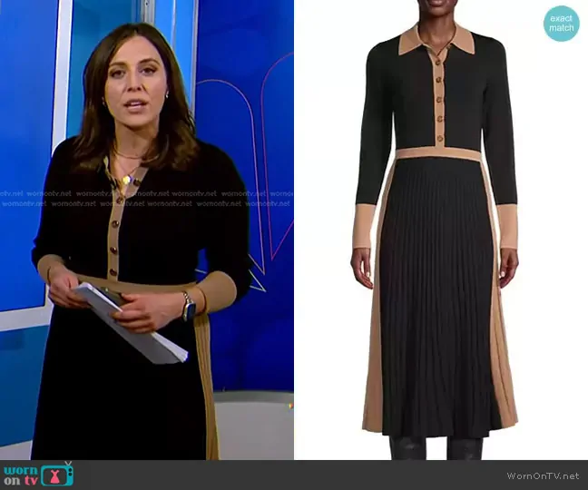 on NBC News Daily on NBC was spotted wearing this black knit polo dress on NBC News Daily on Apr 01 2025's episode. 's Dress is the Mia Two-Tone Knit Shirtdress by Reiss.