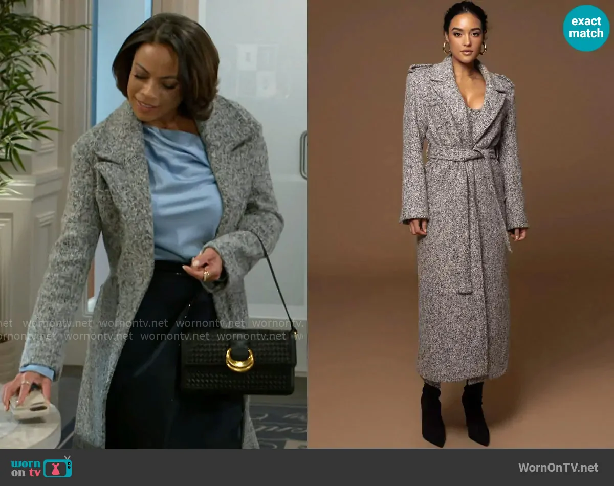 Nicole Dupree Richardson (played by Daphnee Duplaix) on Beyond the Gates on CBS was spotted wearing this long grey coat on Beyond the Gates on Apr 03 2025's episode. Nicole's Coat is the Savannah Belted Tweed Coat by JLuxLabel.