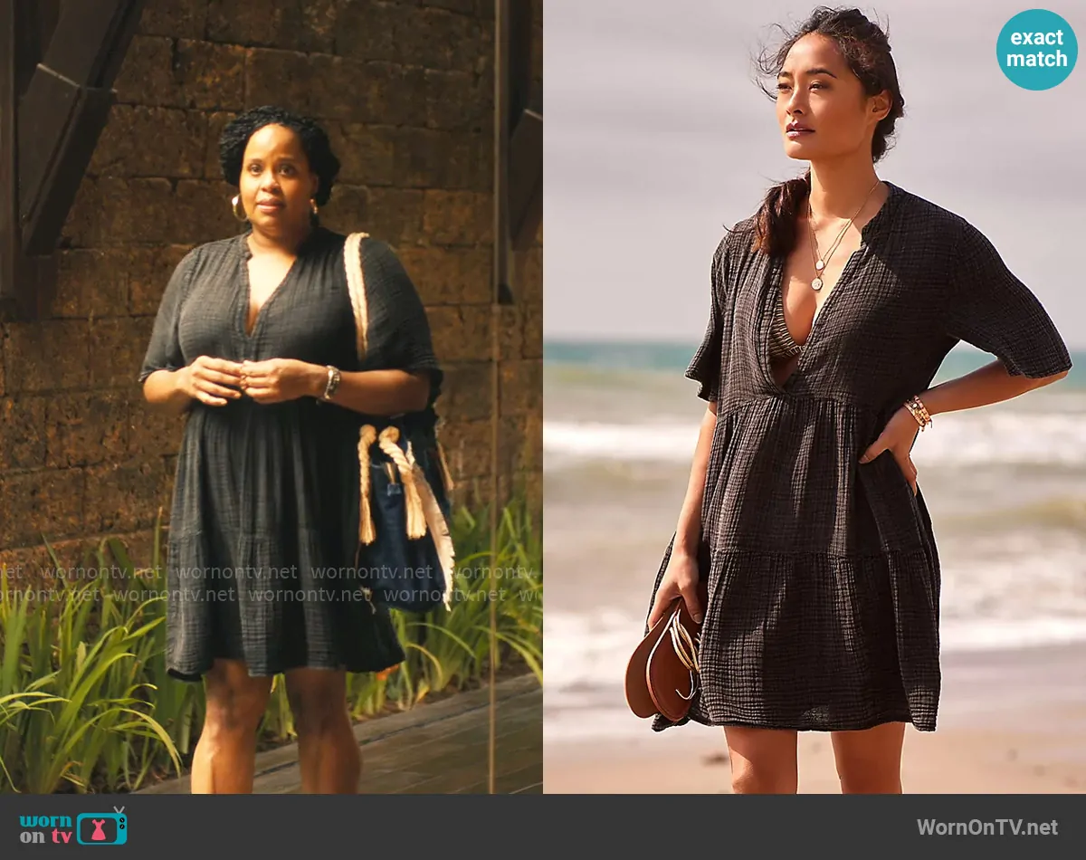 Belinda Lindsey (played by Natasha Rothwell) on The White Lotus on HBO was spotted wearing this black cotton gauze dress on The White Lotus on episode 'Amor Fati' (3x08) in Apr 2025. Belinda's Dress is the The Kallie Flowy Tunic Dress by Anthropologie.
