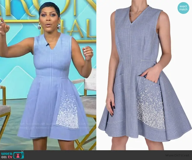Tamron Hall on Tamron Hall Show on ABC was spotted wearing this denim v-neck dress on Tamron Hall Show on Apr 12 2025's episode. Tamron's Dress is the Denim v-neck Dress by Dior.