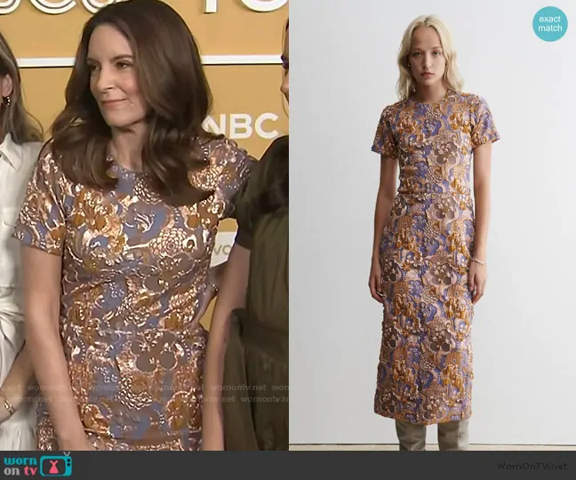on E! News on E! was spotted wearing this floral embroidered dress on E! News on Apr 15 2025's episode. 's Dress is the Goleta Dress by Rachel Comey.