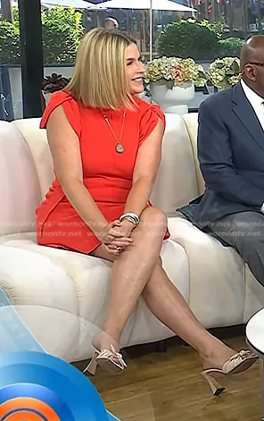 Jenna Bush Hager on Today on NBC was spotted wearing this knotted leather heel sandals on Today on Sep 23 2025's episode. Jenna's Shoes is the Vanilla 85 Marinetti Mule in Sabbia by Giuseppe Zanotti.