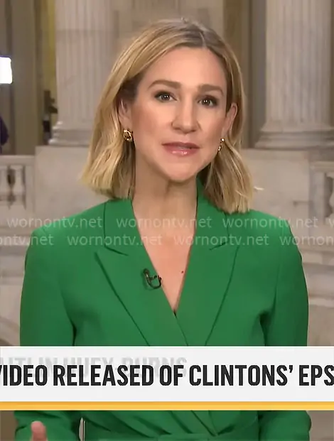 Caitlin Huey-Burns on CBS Mornings on CBS was spotted wearing this Caitlin Huey-Burns’ green suit on CBS Mornings on Mar 03 2026's episode. Caitlin's Suit is the Belted Pantsuit in Emerald by Tahari ASL .