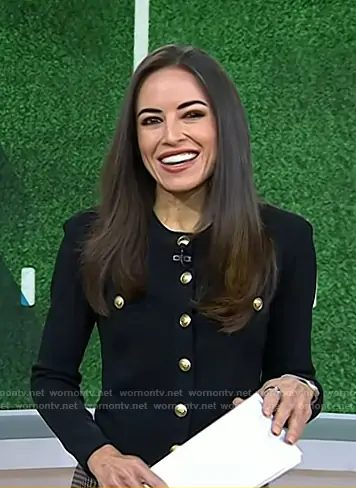 Kaylee Hartung on Today on NBC was spotted wearing this black cardigan with gold buttons on Today on Jan 23 2026's episode. Kaylee's Sweater is the Toulouse Cardigan by L'Agence.