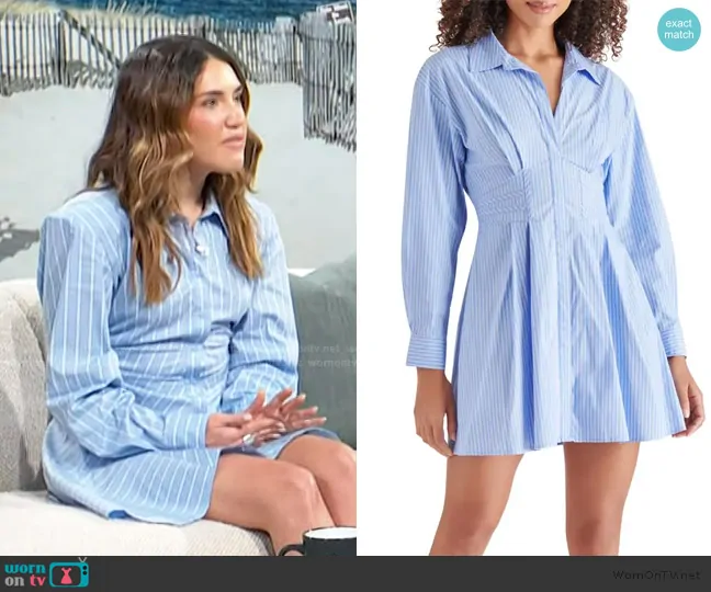 on Access Hollywood on NBC was spotted wearing this blue stripe shirtdress on Access Hollywood on May 26 2025's episode. 's Dress is the Aria Mini Dress by Steve Madden.