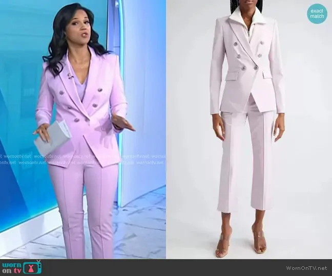 Laura Jarrett on Today on NBC was spotted wearing this pink blazer and pants on Today on Jun 27 2025's episode. Laura's Jacket is the Miller Dickey Jacket in Barely Orchid by Veronica Beard . Laura's Pants is the Kean Pintuck Crop Pants in Barely Orchid by Veronica Beard.