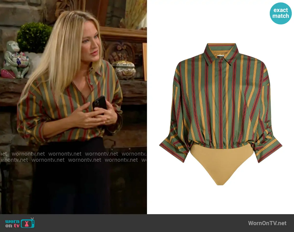 Phyllis Newman (played by Gina Tognoni) on The Young and the Restless on CBS was spotted wearing this leopard print zip front top on The Young and the Restless on Aug 17 2015's episode. Phyllis (old)'s Top is the Leopard Print Silk Top by The Kooples.