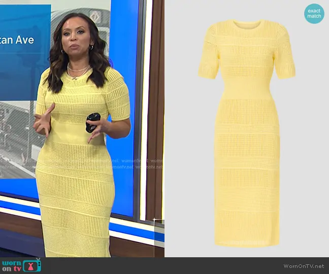 Adelle Caballero on Today on NBC was spotted wearing this yellow short sleeve knit dress on Today on May 08 2025's episode. Adelle's Dress is the Knit Midi Dress by Jason Wu Collective.