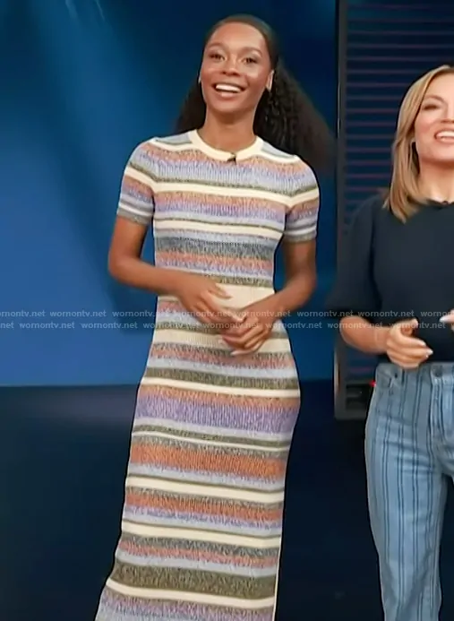 Zuri Hall on Access Hollywood on NBC was spotted wearing this striped midi dress on Access Hollywood on May 12 2025's episode. Zuri's Dress is the Tonnie Dress by Ba&sh.