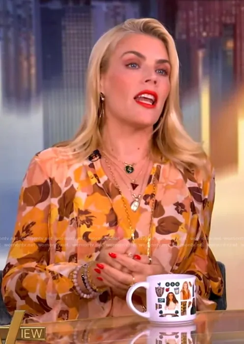 on The View on ABC was spotted wearing this Busy Philipps’ floral print mini dress on The View on May 09 2025's episode. 's Dress is the Balance Lantern Mini Dress by Zimmermann.