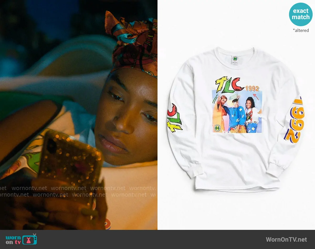 Keisha Clark (played by Lovie Simone) on Forever on Netflix was spotted wearing this TLC graphic top on Forever on episode 'Ghosted' (1x02) in May 2025. Keisha's Top is the Cross Colours TLC 1992 Long Sleeve Tee by Urban Outfitters.