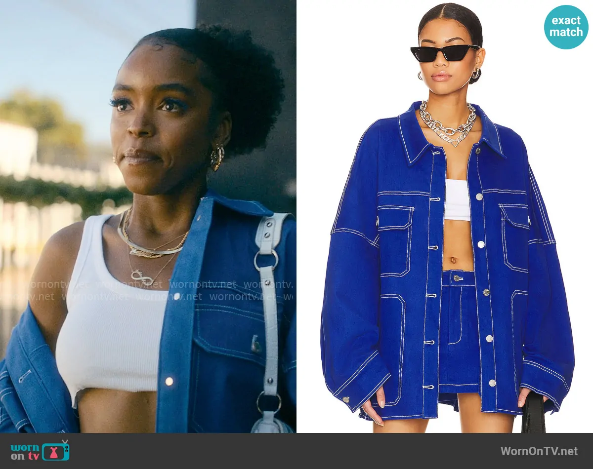 Keisha Clark (played by Lovie Simone) on Forever on Netflix was spotted wearing this blue cropped 89 top on Forever on episode 'Ghosted' (1x02) in May 2025. Keisha's Top is the 89 Jersey Baby Tee by Urban Outfitters . Keisha's Pants is the Charlie Cargo Pant by BDG at Urban Outfitters . Keisha's Shoes is the Air Jordan Sneakers in Sail/Diffused Blue-blue Grey by Nike.