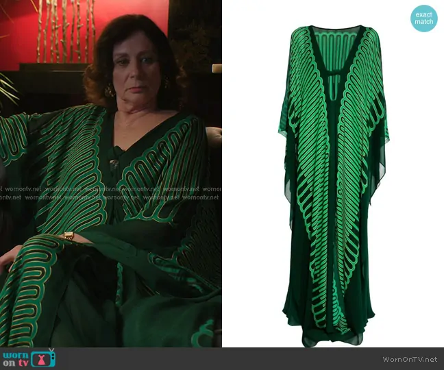 Clea Duplessis (played by Isabelle Candelier) on Etoile on Amazon Prime was spotted wearing this green print kaftan on Etoile on episode 'The Hiccup' (1x04) in Apr 2025. 's Dress is the Tejiendo El Tropico Kaftan Dress by Johanna Ortiz.