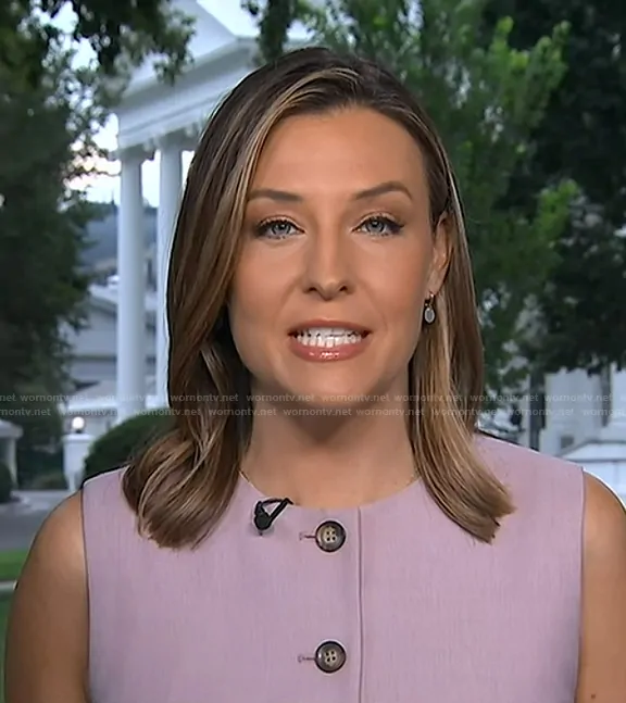 Mary Bruce on Good Morning America on ABC was spotted wearing this pink vest on Good Morning America on Aug 06 2025's episode. Mary's Vest is the The Long Crew Neck Vest in Rosy Mauve by Ann Taylor.