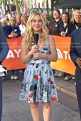 on Today on NBC was spotted wearing this blue floral mini dress on Today on May 19 2025's episode. 's Dress is the Audrey Dress in Botanica Blue by Cara Cara.
