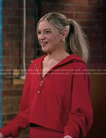 Kelsea Ballerini on The Voice on NBC was spotted wearing this Kelsea Ballerini’s red half-zip hoodie on The Voice on May 21 2025's episode. Kelsea's Sweater is the Scuba Oversized Half-zip Hoodie in Red by Lululemon . Kelsea's Shoes is the Beyondfeel Running Shoe by Lululemon.