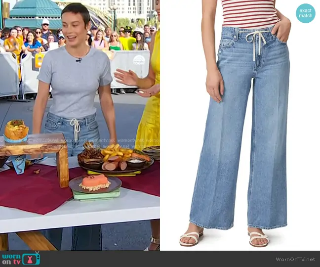 on Today on NBC was spotted wearing this drawstring waist jeans on Today on May 21 2025's episode. 's Pants is the Zoey Tie Waist Wide Leg Jeans by Paige.