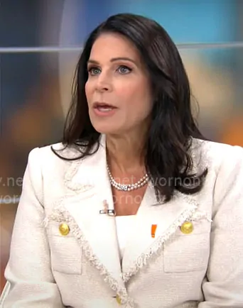 on CBS Mornings on CBS was spotted wearing this Lisa Seigies’ tweed jacket on CBS Mornings on May 30 2025's episode. 's Jacket is the Sylvia Jacket by L'Agence .