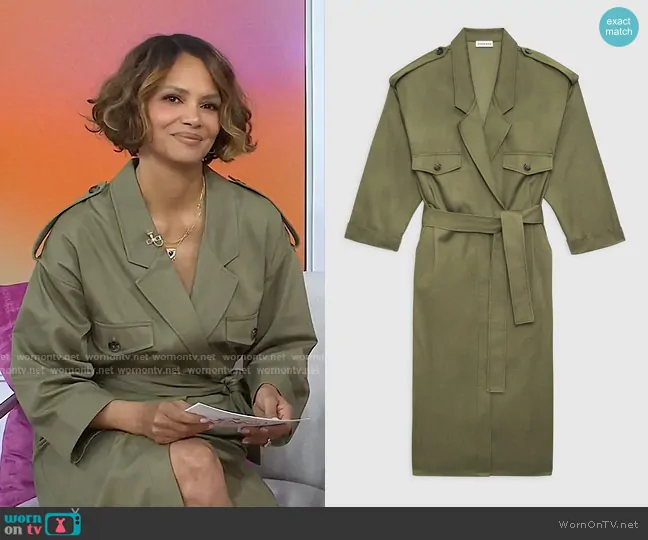 on Today on NBC was spotted wearing this green safari wrap dress on Today on Aug 19 2025's episode. 's Dress is the Zelda Dress in Olive by Anine Bing.