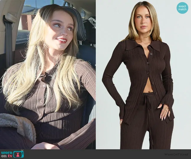 Mikayla Matthews on The Secret Lives of Mormon Wives on Hulu was spotted wearing this brown ribbed shirt and pants on The Secret Lives of Mormon Wives on episode 'The Book of Divisions' (2x05) in Jun 2025. Mikayla's Top is the Kelsey Top by ShowPo . Mikayla's Pants is the Kelsey Pants by ShowPo.