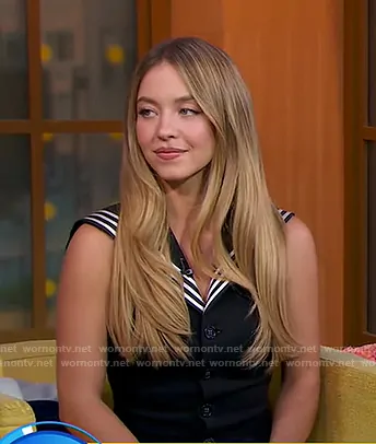 on Good Morning America on ABC was spotted wearing this black stripe collar top and skirt on Good Morning America on Jun 04 2025's episode. 's Outfit is the Fall Winter 2025 Collection by Coperni.