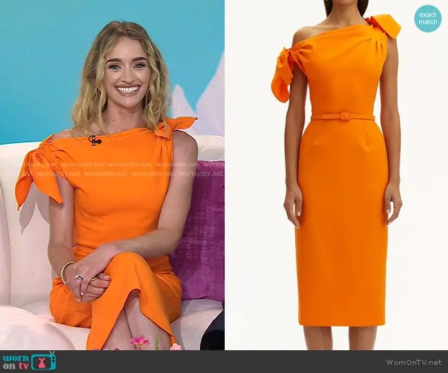on Today on NBC was spotted wearing this orange knotted dress on Today on Jun 05 2025's episode. 's Dress is the One Shoulder Sheath Dress in Clementine by Oscar de la Renta.