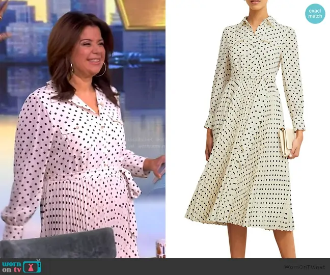 Ana Navarro on The View on ABC was spotted wearing this white polka dot print shirtdress on The View on Jun 09 2025's episode. Ana's Dress is the Larina Shirtdress by Hobbs London.