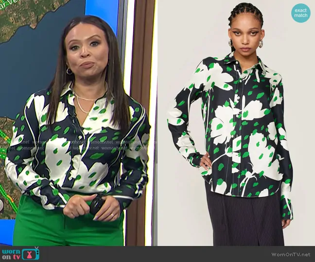 Adelle Caballero on Today on NBC was spotted wearing this black printed shirt on Today on Jun 10 2025's episode. Adelle's Top is the Back Cowl Shirt by Monse.