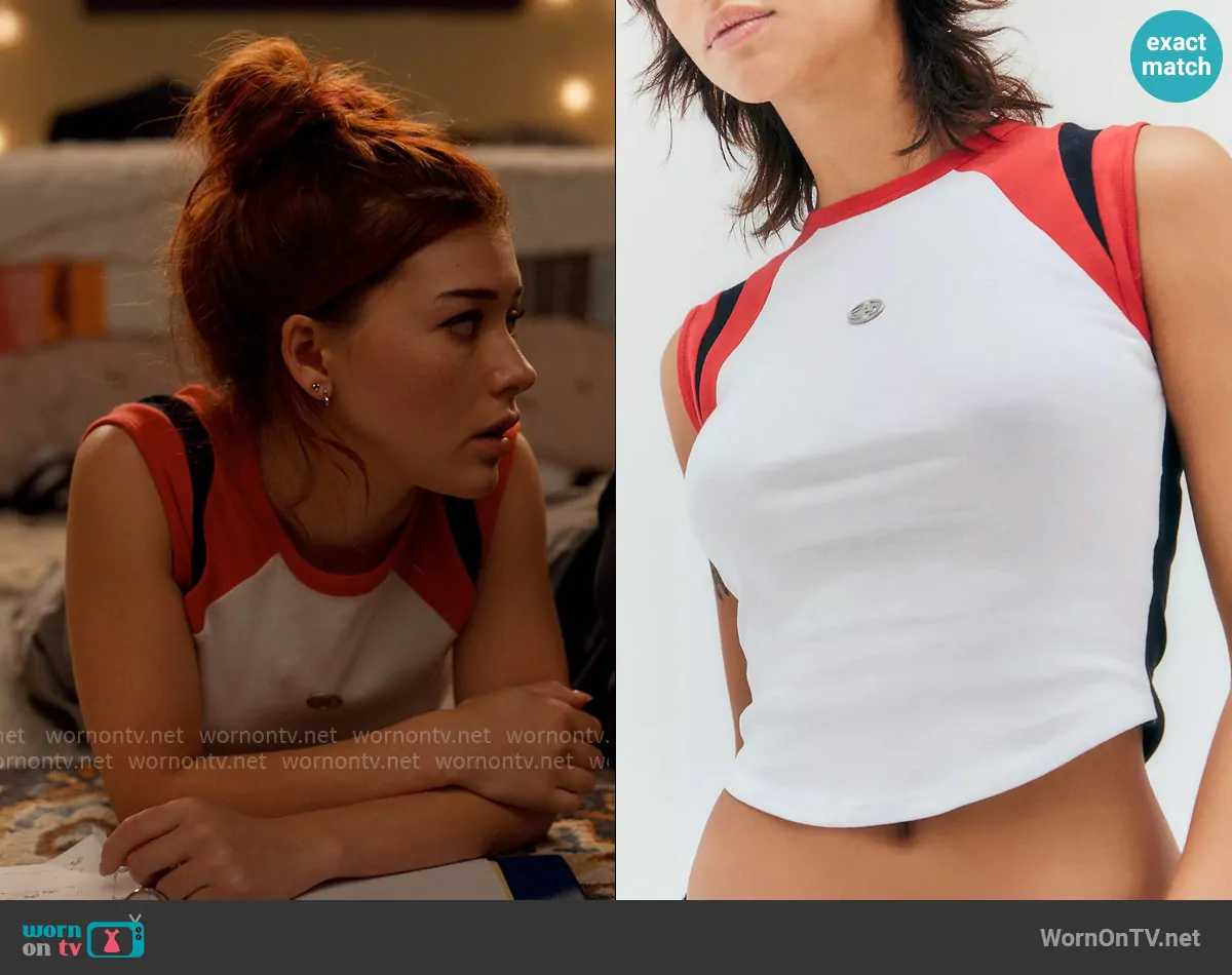 Abby Littman (played by Katie Douglas) on Ginny & Georgia on Netflix was spotted wearing this red and white tank top on Ginny & Georgia on episode 'It's Time For My Solo' (3x09) in Jun 2025. Abby's Top is the Menace Tank Top by Basic Pleasure Mode.