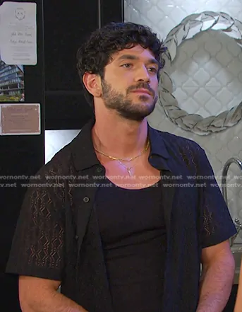 Javi Hernandez (played by Al Calderon) on Days of our Lives on Peacock was spotted wearing this black perforated short sleeve shirt on Days of our Lives on Jun 26 2025's episode. 's Shirt is the Reeves Perforated Woven Shirt by Guess.