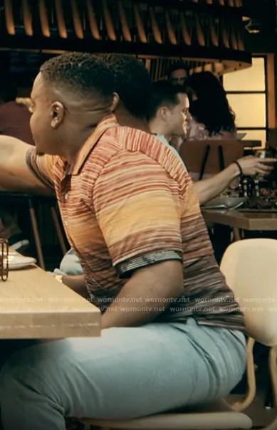 (played by ) on The Chi on ShowTime was spotted wearing this mixed gradient shirt on The Chi on episode 'More Life' (7x03) in Jan 2025. 's Shirt is the Stripe-pattern cotton polo shirt by Missoni.