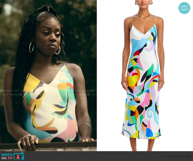 Kiesha Williams (played by Birgundi Baker) on The Chi on ShowTime was spotted wearing this abstract print dress on The Chi on episode 'Mother's Day' (7x04) in Jun 2025. Kiesha's Dress is the Seridie Silk Printed Midi Slip Dress by L'Agence.
