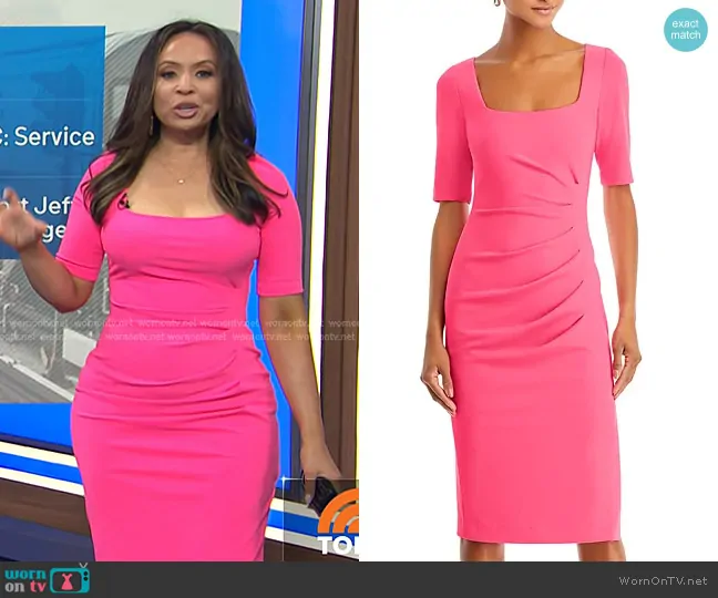 Adelle Caballero on Today on NBC was spotted wearing this pink square-neck dress on Today on Jun 23 2025's episode. Adelle's Dress is the Salvanna Sheath Dress in Neon Pink by Black Halo.
