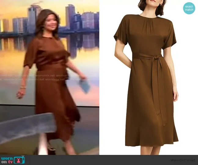 Ana Navarro on The View on ABC was spotted wearing this brown tie waist dress on The View on Jun 25 2025's episode. Ana's Dress is the Darracott Dress by Hobbs London.