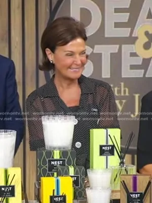 Prada Polka-Dot Silk Chiffon Shirt Dress worn by Laura Slatkin on Good Morning America