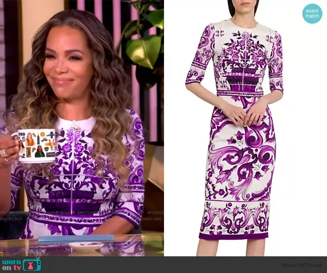 Sunny Hostin on The View on ABC was spotted wearing this floral print sheath dress on The View on Jun 27 2025's episode. Sunny's Dress is the Majolica Print Silk Midi-Dress by Dolce & Gabbana.