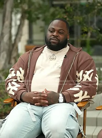 Red Letters Not NY Lovers Scattered Hoodie in Brown worn by Khalen Saunders on Today