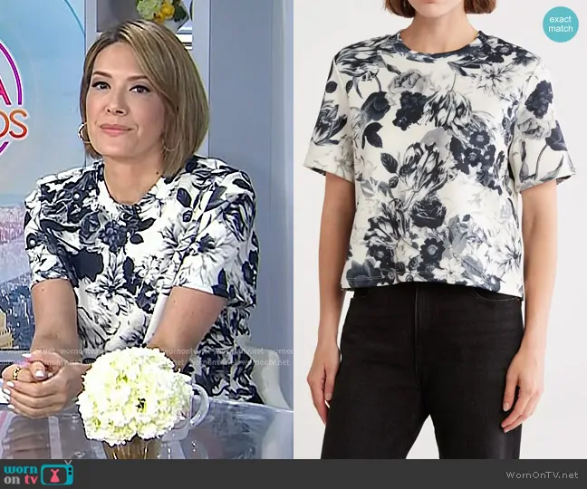 on Today on NBC was spotted wearing this Michelle Collins’ floral tee on Today on Jun 30 2025's episode. 's Top is the Print Top in Navy Blossom Breeze Print by T Tahari.