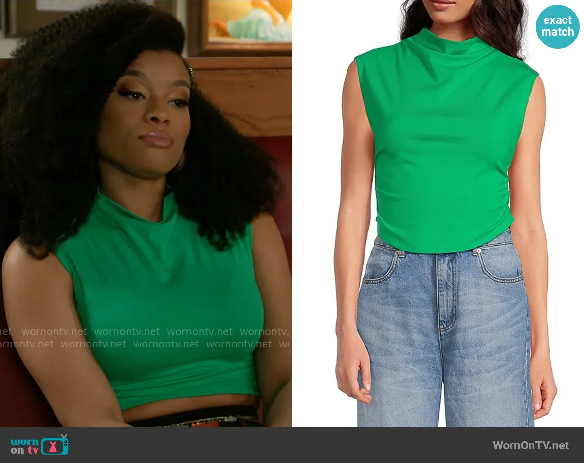 Eva Thomas (played by Ambyr Michelle) on Beyond the Gates on CBS was spotted wearing this green crop top and colorblock skirt on Beyond the Gates on Jun 30 2025's episode. Eva's Top is the Knit Mock Neck Cap Sleeve Crop Top in Kelly Green by Gianni Bini . Eva's Skirt is the Beast Mode Maxi Skirt by Akira . Eva's Shoes is the Copse Orange Sandal by Azalea Wang.