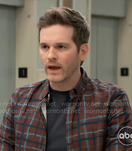 Lucas Jones (played by Van Hansis) on General Hospital on ABC was spotted wearing this brown checked shirt on General Hospital on Jul 02 2025's episode. 's Shirt is the Regular Fit Plaid Shirt by Paul Smith .
