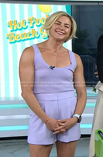 on Today on NBC was spotted wearing this lilac knit tank and shorts on Today on Jul 04 2025's episode. 's Top is the Birke Cashmere Scoopneck Tank Top in Soft Lilac by Veronica Beard . 's Shorts is the Elbe Pleated Short in Soft Lilac by Veronica Beard.