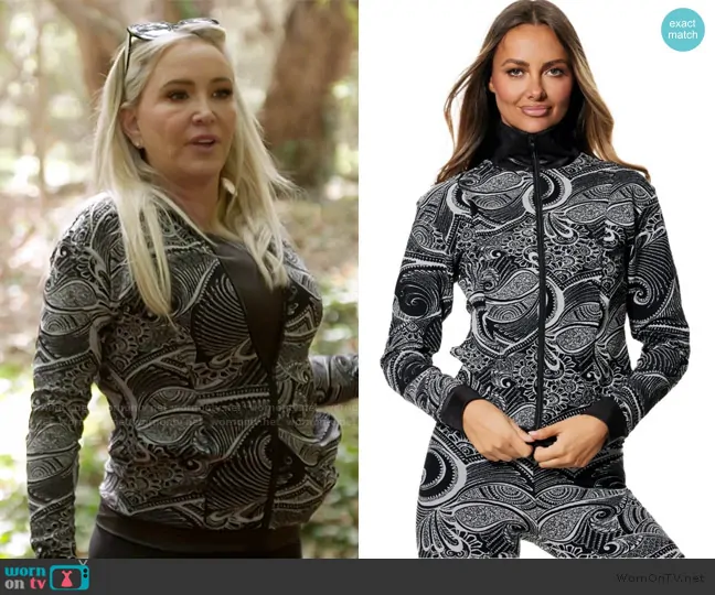 Shannon Beador on The Real Housewives of Orange County on Bravo was spotted wearing this paisley print jacket and sunglasses on The Real Housewives of Orange County on episode 'Revolving Door of Lies' (19x01) in Jul 2025. Shannon's Jacket is the Jacket I Black with Grey by Coco On The Go . Shannon's Sunglasses is the Cat Eye Sunglasses by Prada.