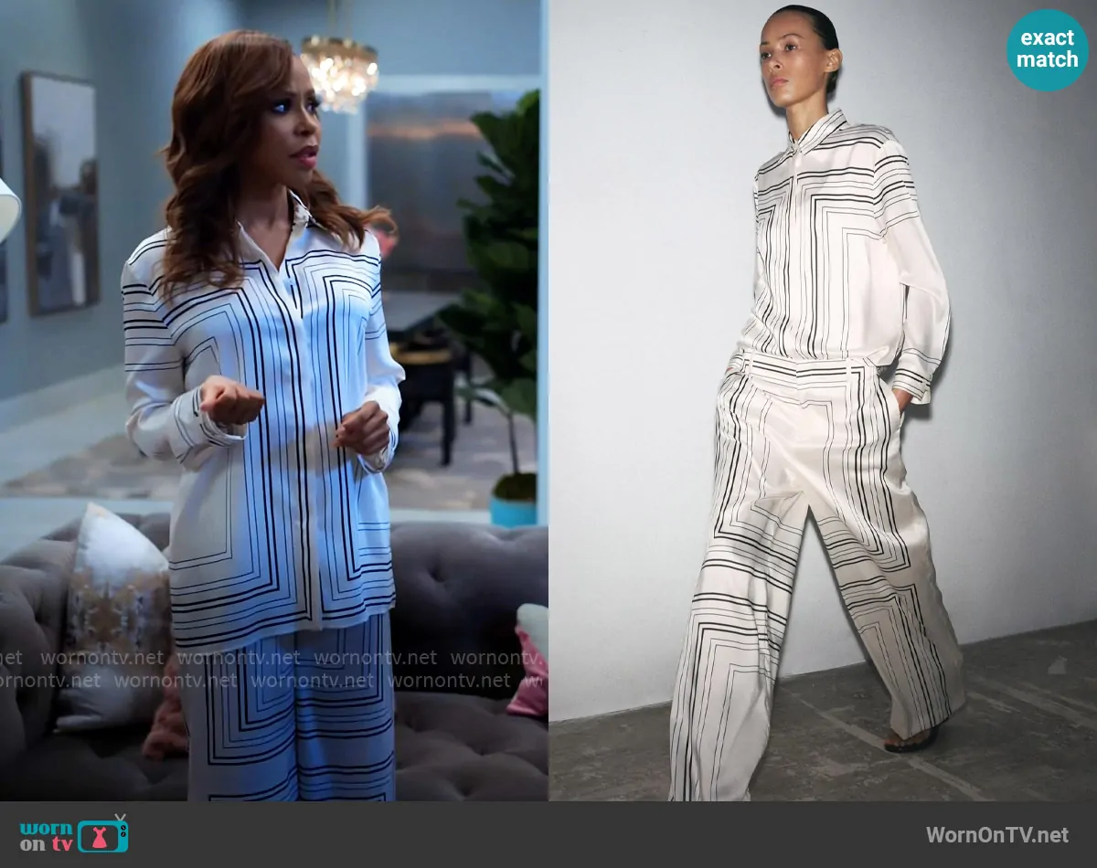 Andrea Barnes (played by Kj Smith) on Tyler Perrys Sistas on BET was spotted wearing this striped shirt and pants set on Tyler Perrys Sistas on episode 'No Time to Wait' (9x01) in Jul 2025. Andi's Top is the Printed Shirt by Zara . Andi's Pants is the Printed Pants by Zara.