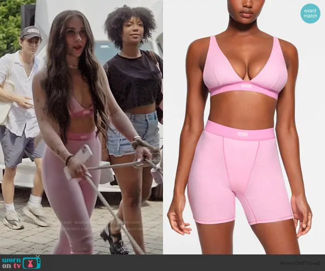 Ariana Biermann on Next Gen NYC on Bravo was spotted wearing this pink top and leggings on Next Gen NYC on episode 'Daddy Issues and Poolside Tissues' (1x03) in Jun 2025. Ariana's Bra is the Plunge Bralette by Skims . Ariana's Leggings is the Ribbed Leggings by Skims . Ariana's Bag is the Classic Vanity Case wChain by Chanel.